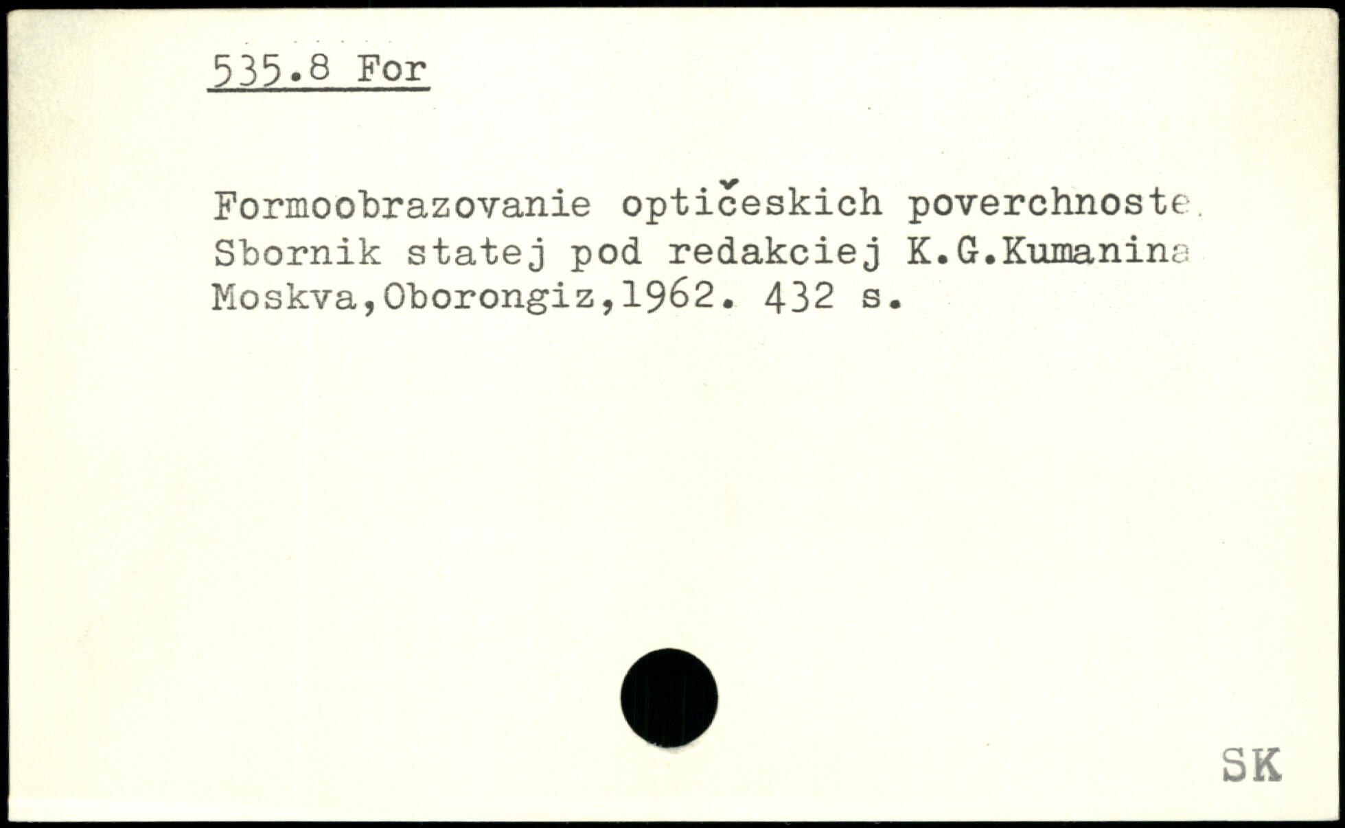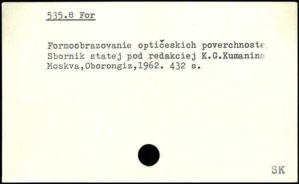 Formoobrazovanie opticeskich poverchnoste Sbornik statej pod redakciej K.G.