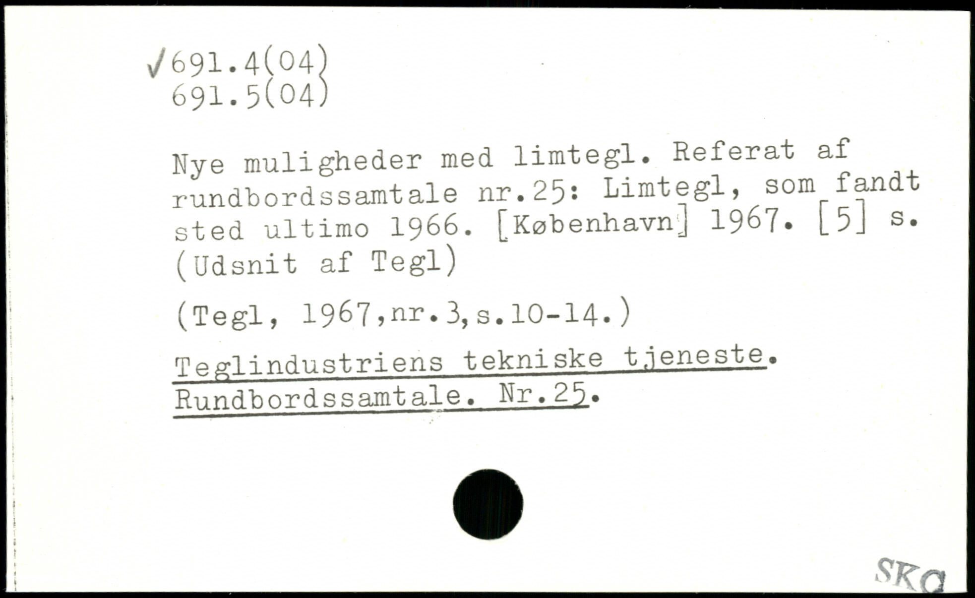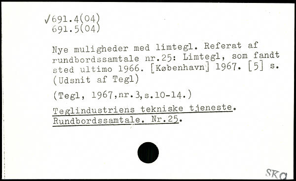 Nye muligheder med limtegl. Referat af rundbordssamtale nr.25: Limtegl, som fandt sted ultimo 1966. [Københavnj 19.7, L5J s. (Udsnit af Tegl)
