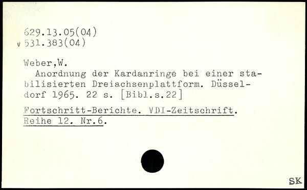 Anordnung der Kardanringe bei einer stabilisierten Dreiachsenplattform. Düsseldorf 1965.