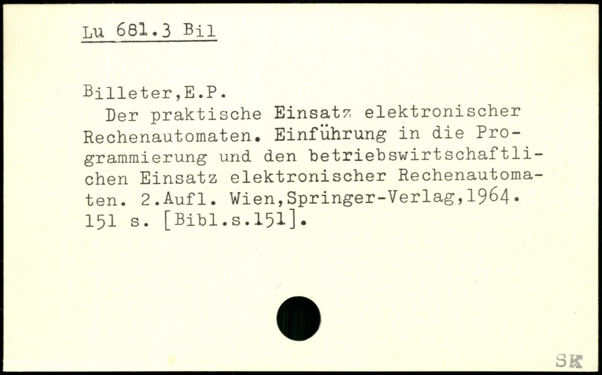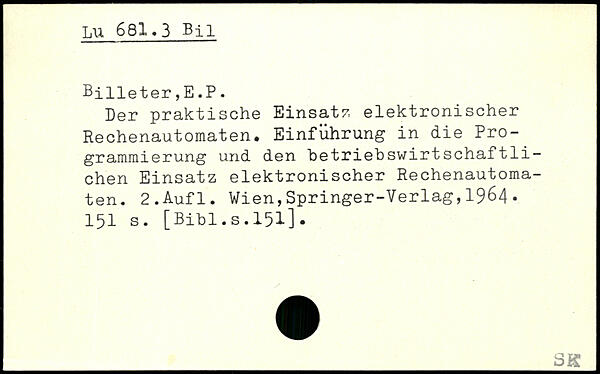 Der praktische Einsatz elektronischer Rechenautomaten. Einführung in die Programmierung und den betriebswirtschaftlichen Einsatz elektronischer Rechenautomaten.