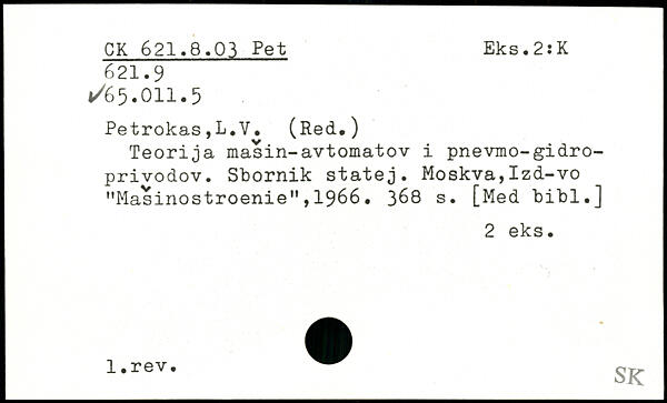 Teorija masin-avtomatov i pnevmo-gidro-privodov. Sbornik statej.