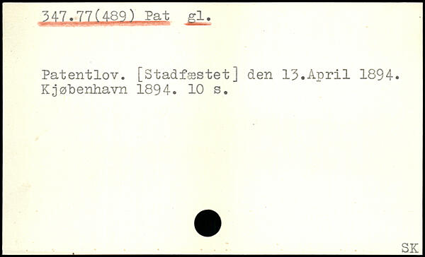Patentlov. [Stadfæstet] den 13.April 1894. Kjøbenhavn 1894.