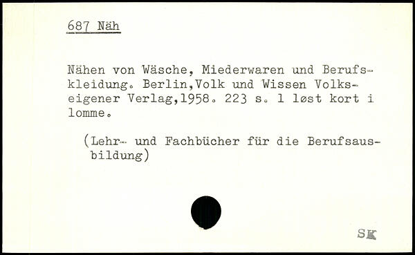Nähen von Wäsche, Miederwaren und Berufskleidung, Berlin,Volk und Wissen Volkseigener Verlag,1958o