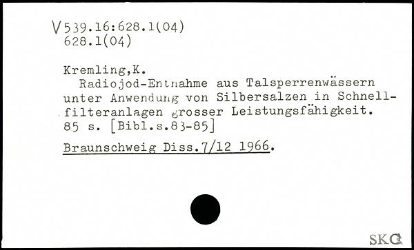 Radiojod-Entnahme aus Talsperrenwässern unter Anwendung von Silbersalzen in Schnellfilteranlagen grosser Leistungsfähigkeit.
