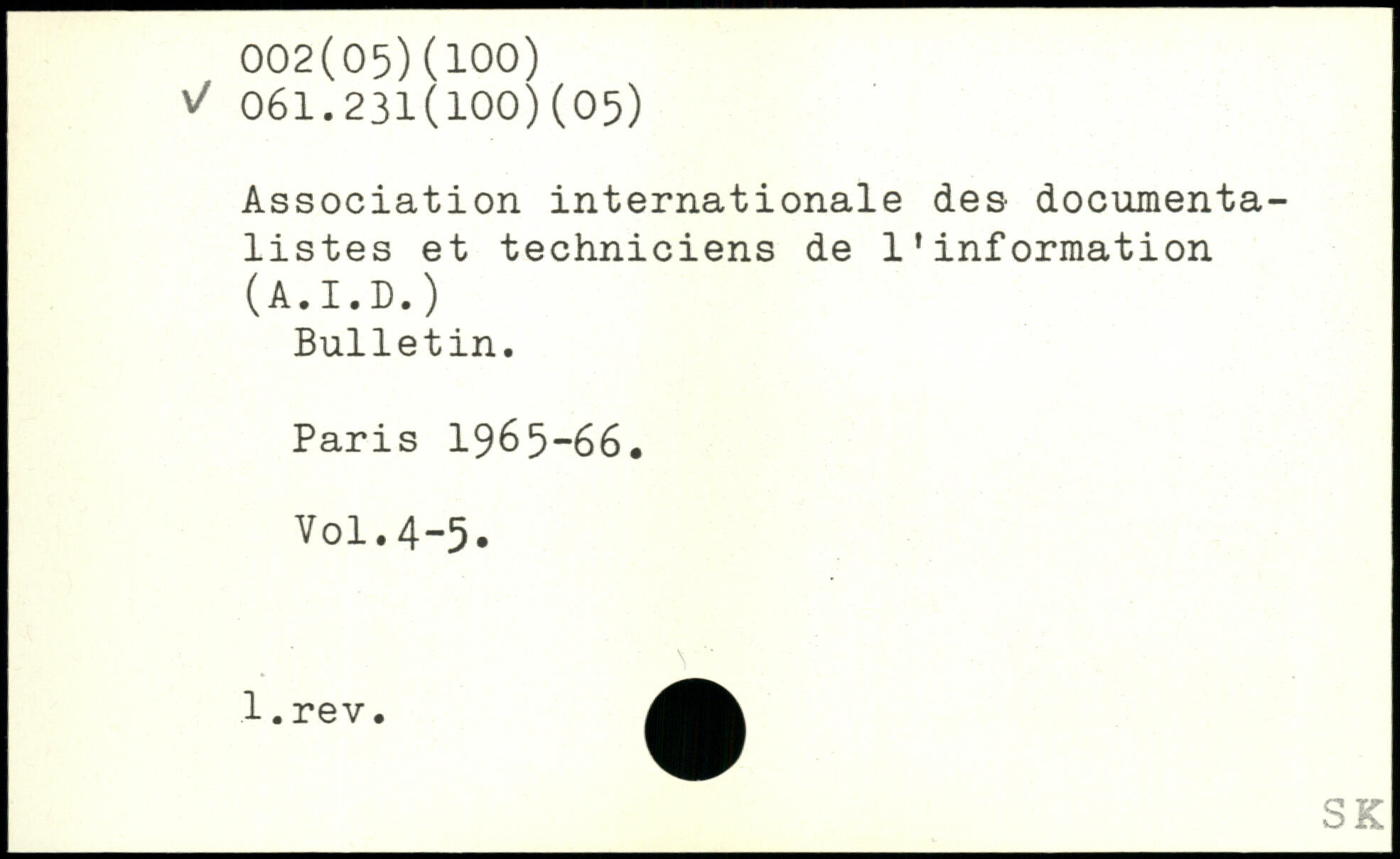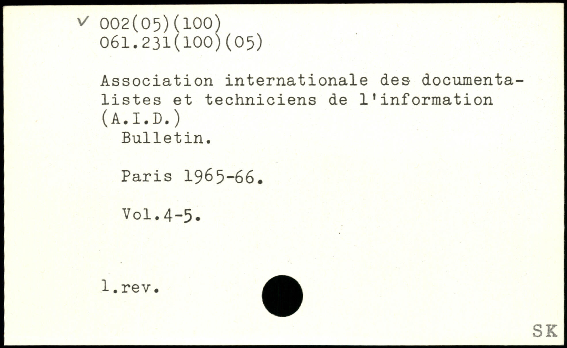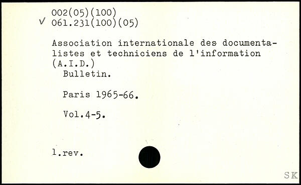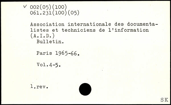 Association internationale des documentalistes et techniciens de l'information (A.I.D.) Bulletin.