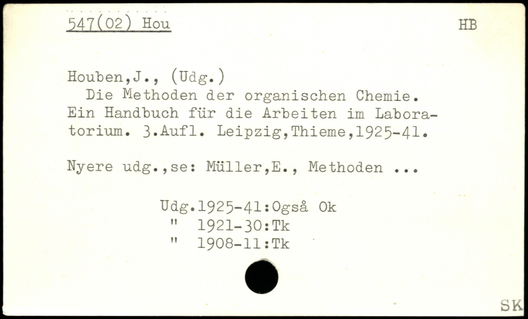 Houben,J., (üdg.) Die Methoden der organischen Chemie. Ein Handbuch für die Arbeiten im Laboratorium.