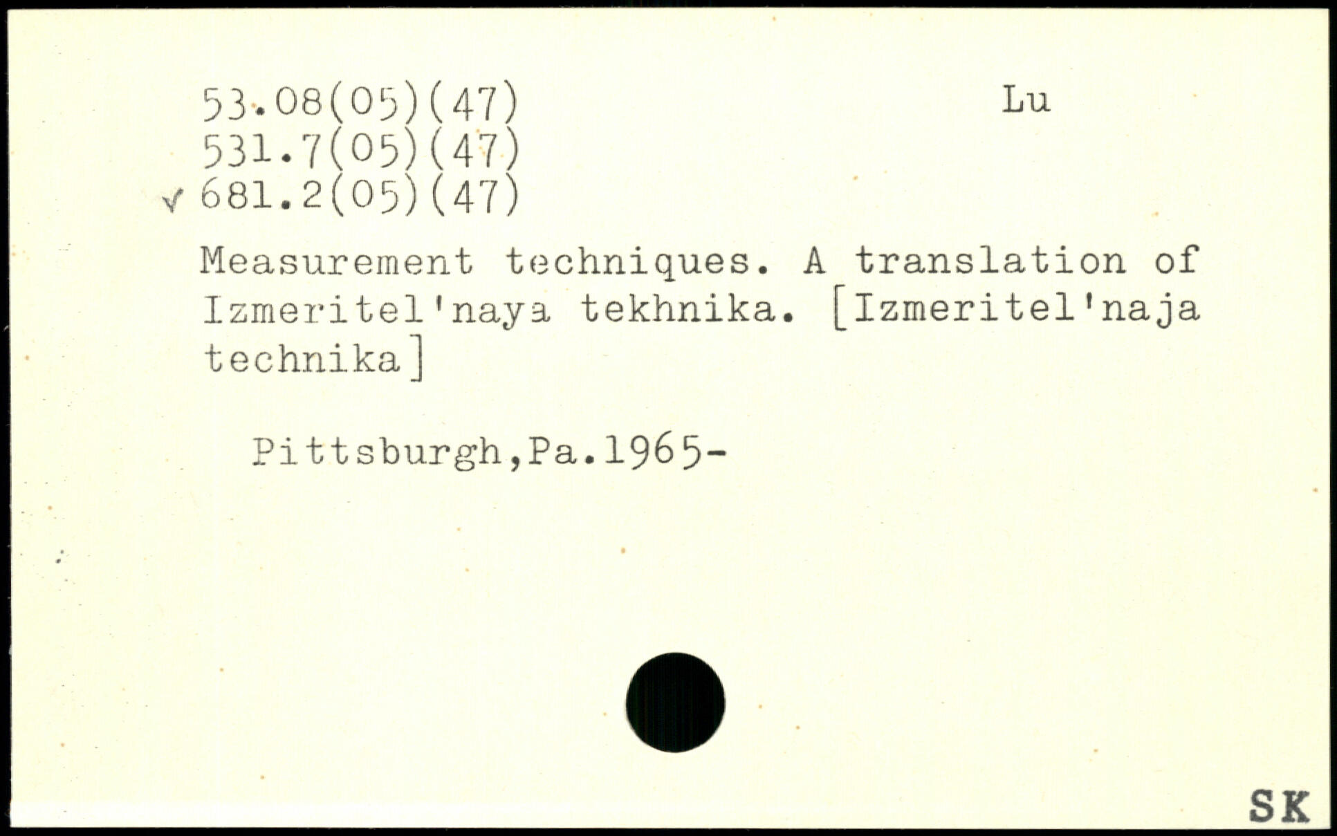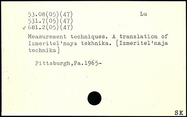 Measurement techniques. A translation of Izmeritel'naya tekhnika.