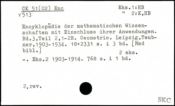 Encyklop.ädie der mathematischen Wissenschaften mit Einschluss ihrer Anwendungen.