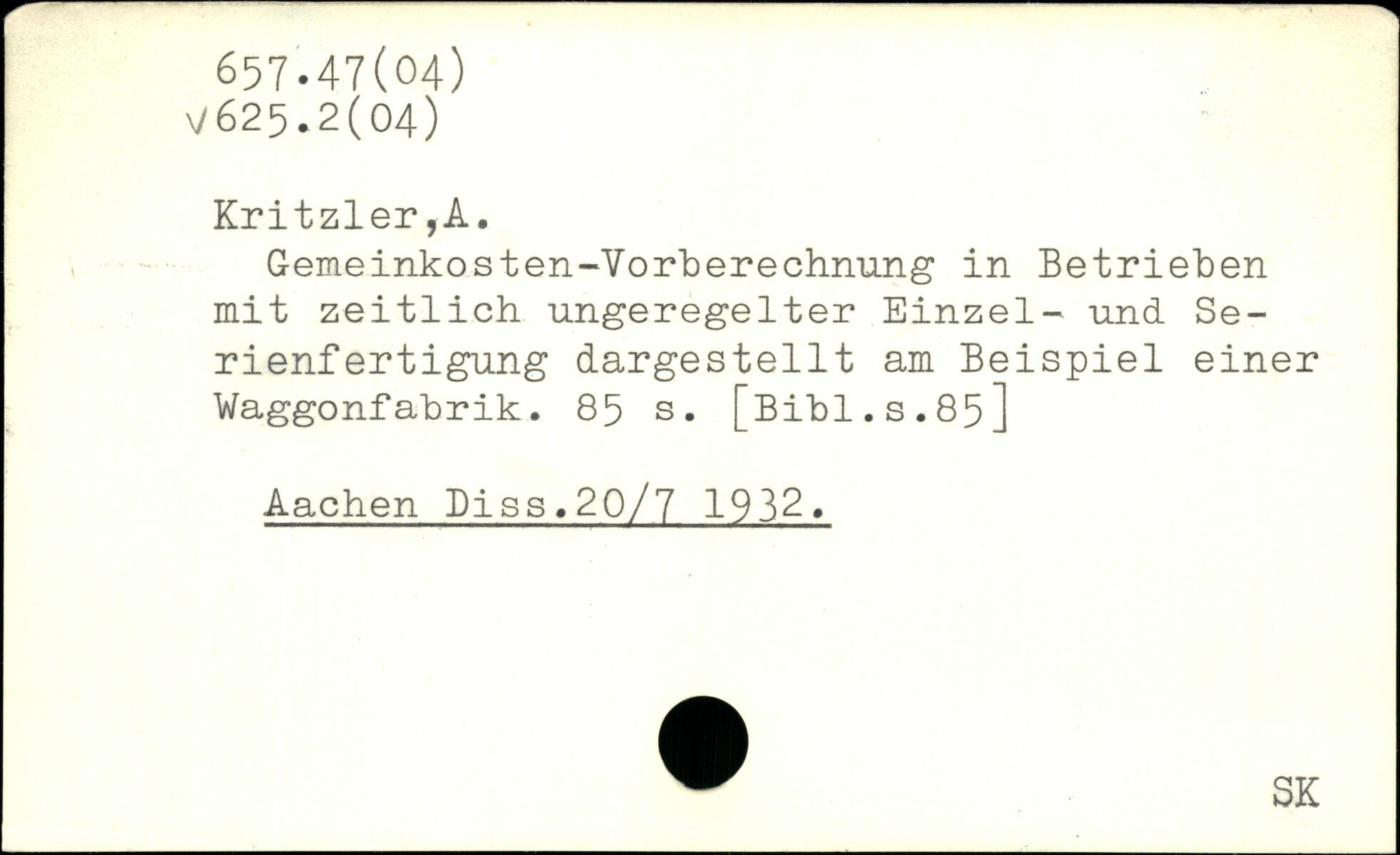 Gemeinkosten-Vorberechnung in Betrieben mit zeitlich ungeregelter Einzel- und Se-rienf ertigung dargestellt am Beispiel einer Waggonfabrik.