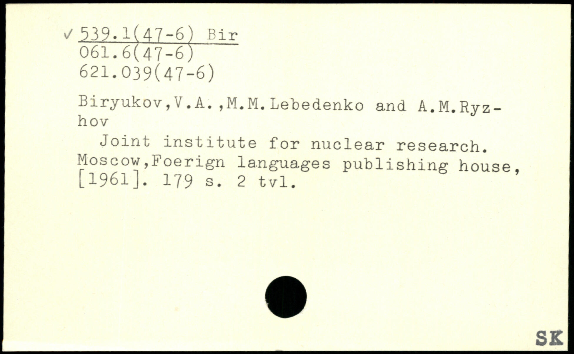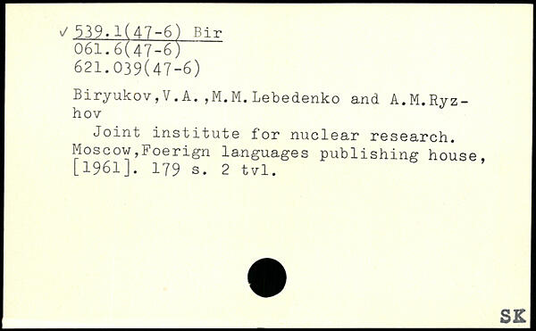 Forfatter: V.A. Biryukov, M.M. Lebedenko