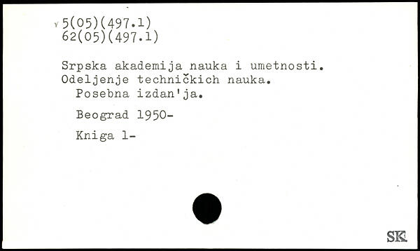 Srpska akademija nauka i umetnosti. Odeljenje technickich nauka. Posebna izdan'ja.