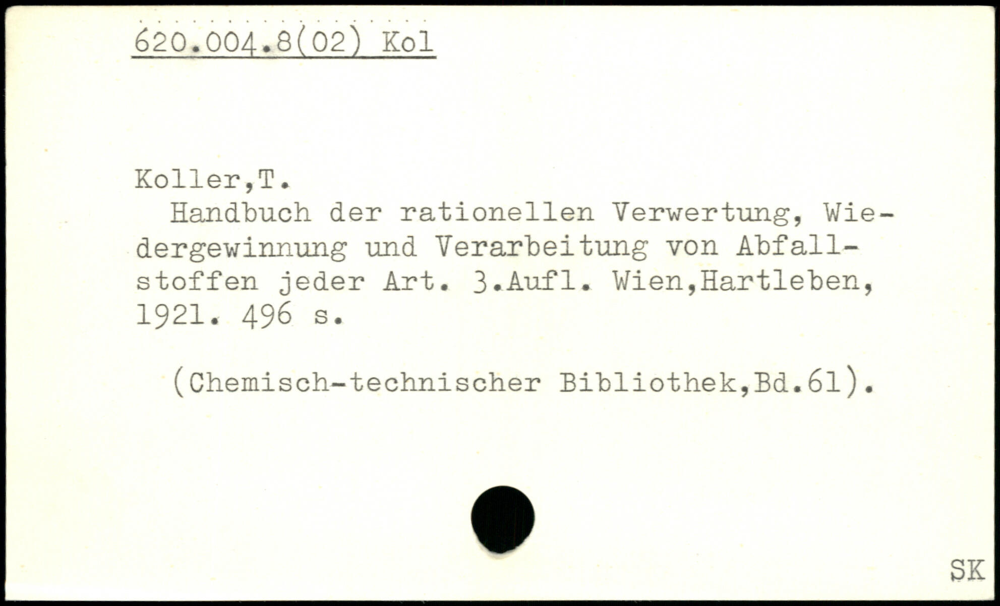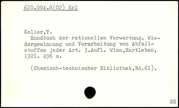 Handbuch der rationellen Verwertung, Wiedergewinnung und Verarbeitung von Abfallstoffen jeder Art.