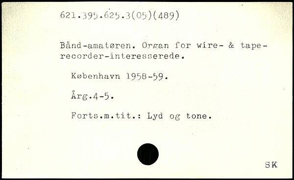 Bånd-amatøren. Organ for wire- & tape-recorder-interesserede.