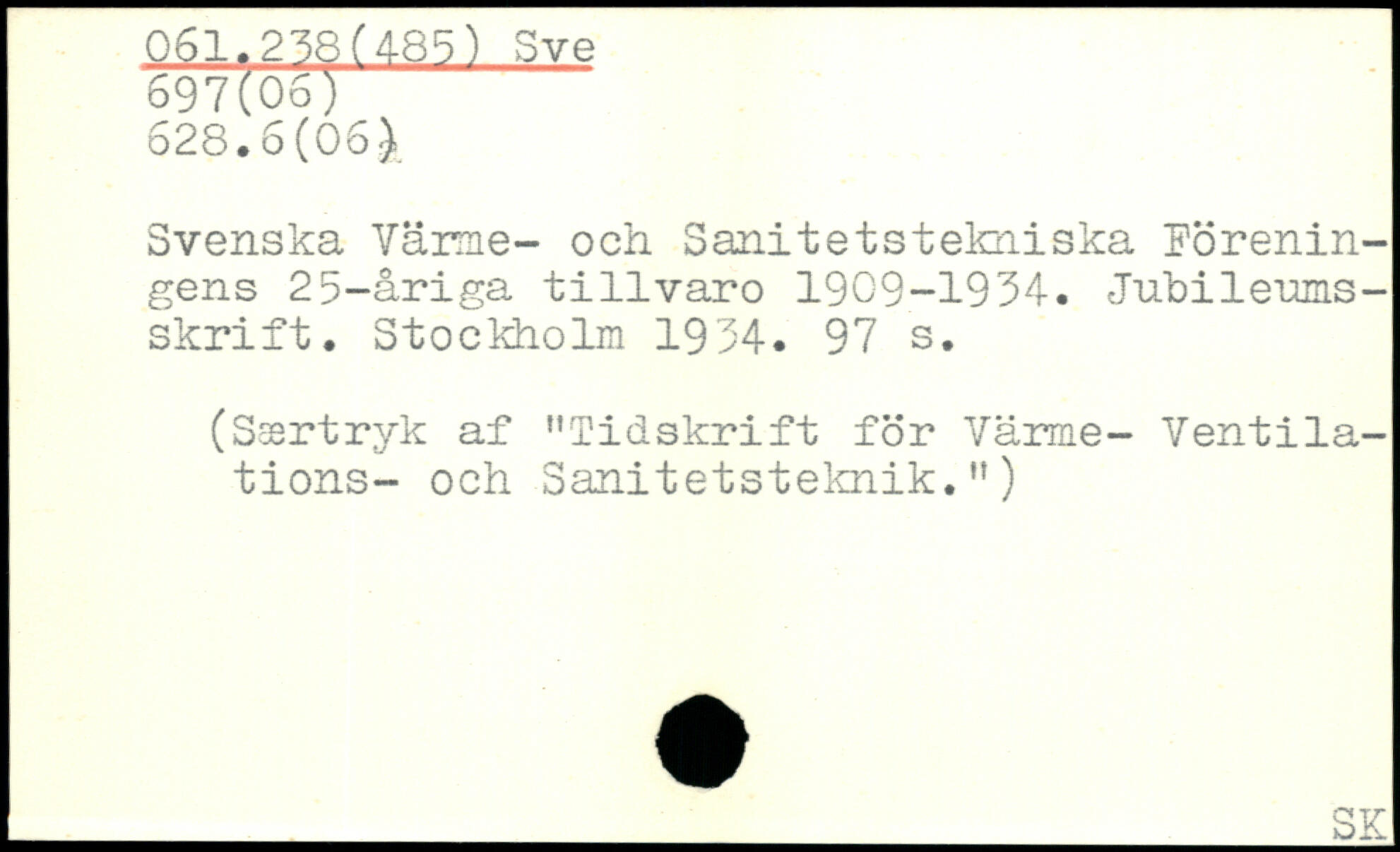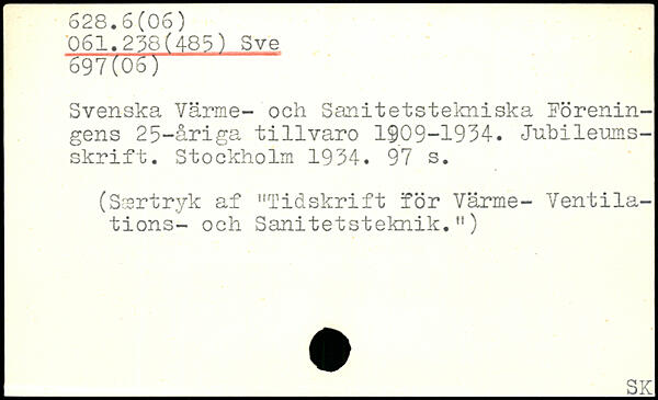 Svenska Värme- och Sanitetstekniska föreningens 25-åriga tillvaro 1909-1934. Jubileumsskrift.