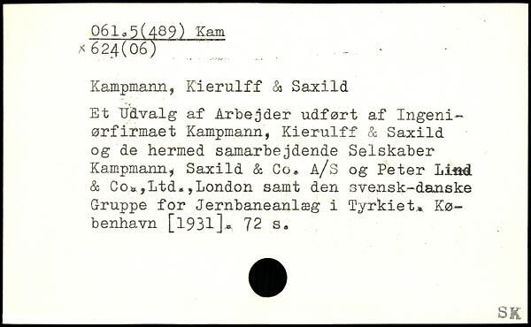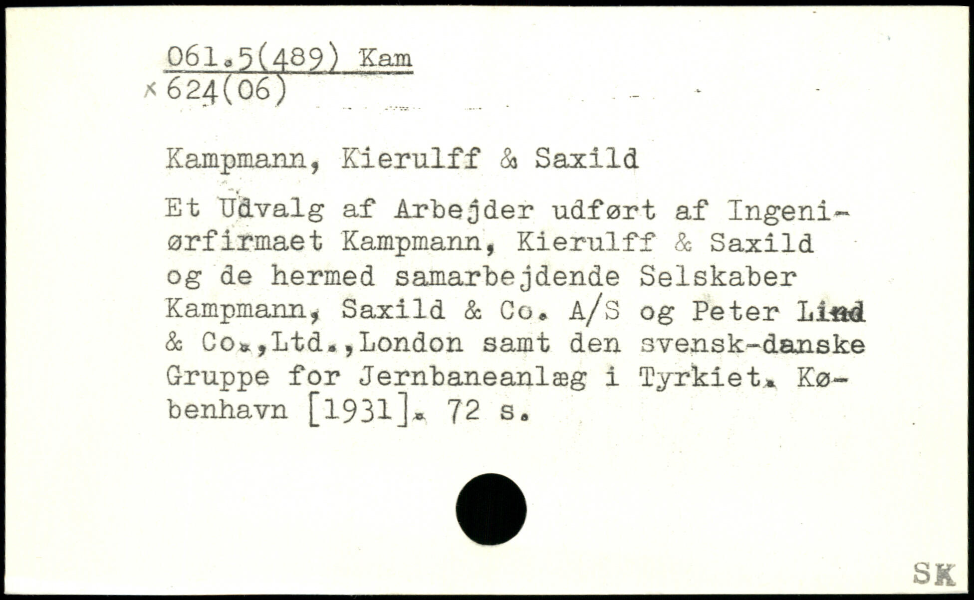 Kampmann, Kierulff & Saxild Et Udvalg af Arbejder udført af Ingeniørfirmaet Kampmann, Kierulff & Saxild og de hermed samarbejdende Selskaber Kampmann, Saxild & Go, a/s og Peter Lisd & Co.,Ltd.,London samt den svensk-danske Gruppe for Jernbaneanlæg i Tyrkiet.