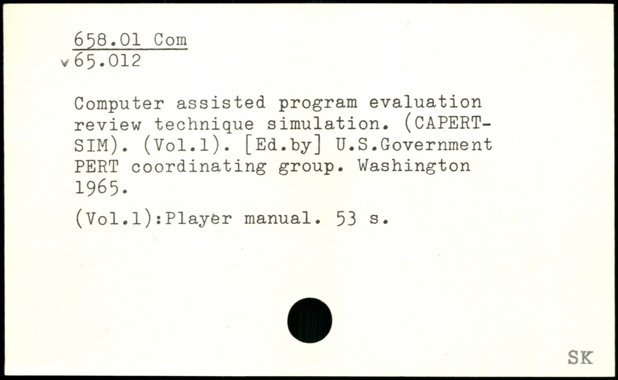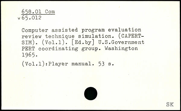 Computer assisted program evaluation review technique simulation. (CAPERT-SIM). (Vol.l). [Ed.by] U.S.Government PERT coordinating group.
