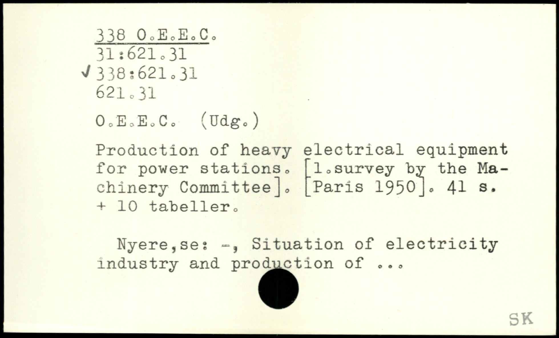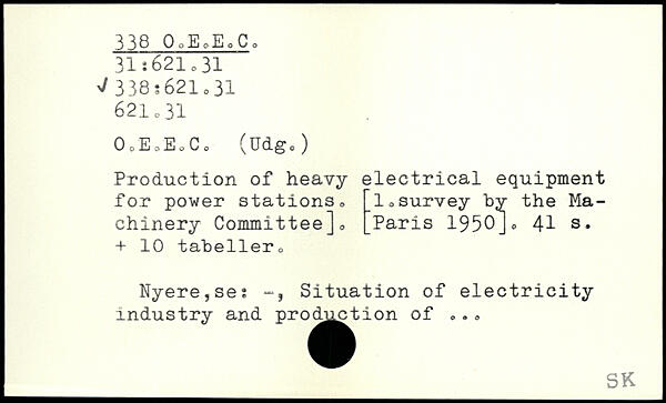 OoËoE.C, (üdgo) Production of heavy electrical equipment for power stations,, 1,survey by the Machinery Committee]