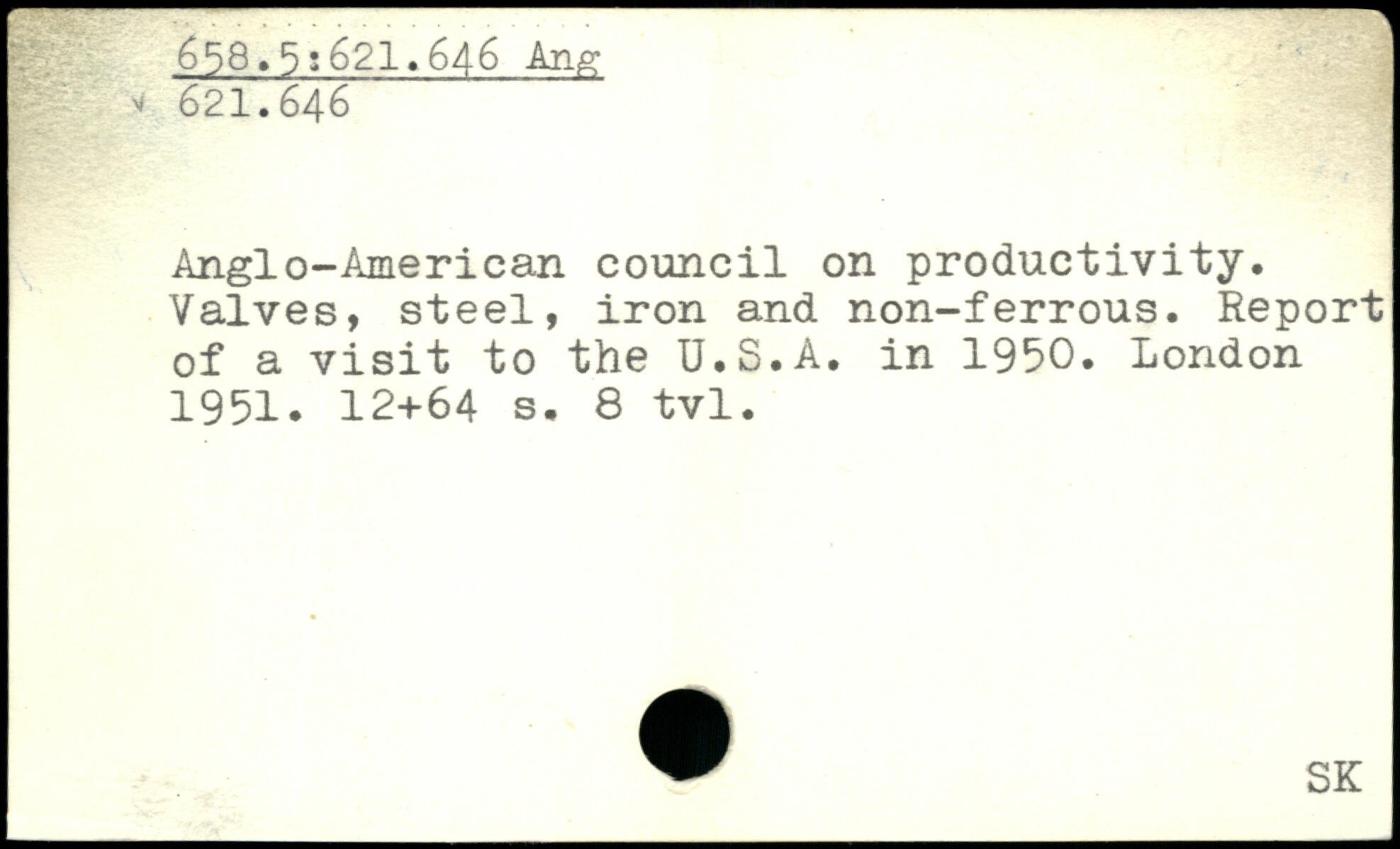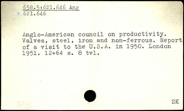 Anglo-American council on productivity. Valves, steel, iron and non-ferrous. Report of a visit to the U.S.A. in 1950.