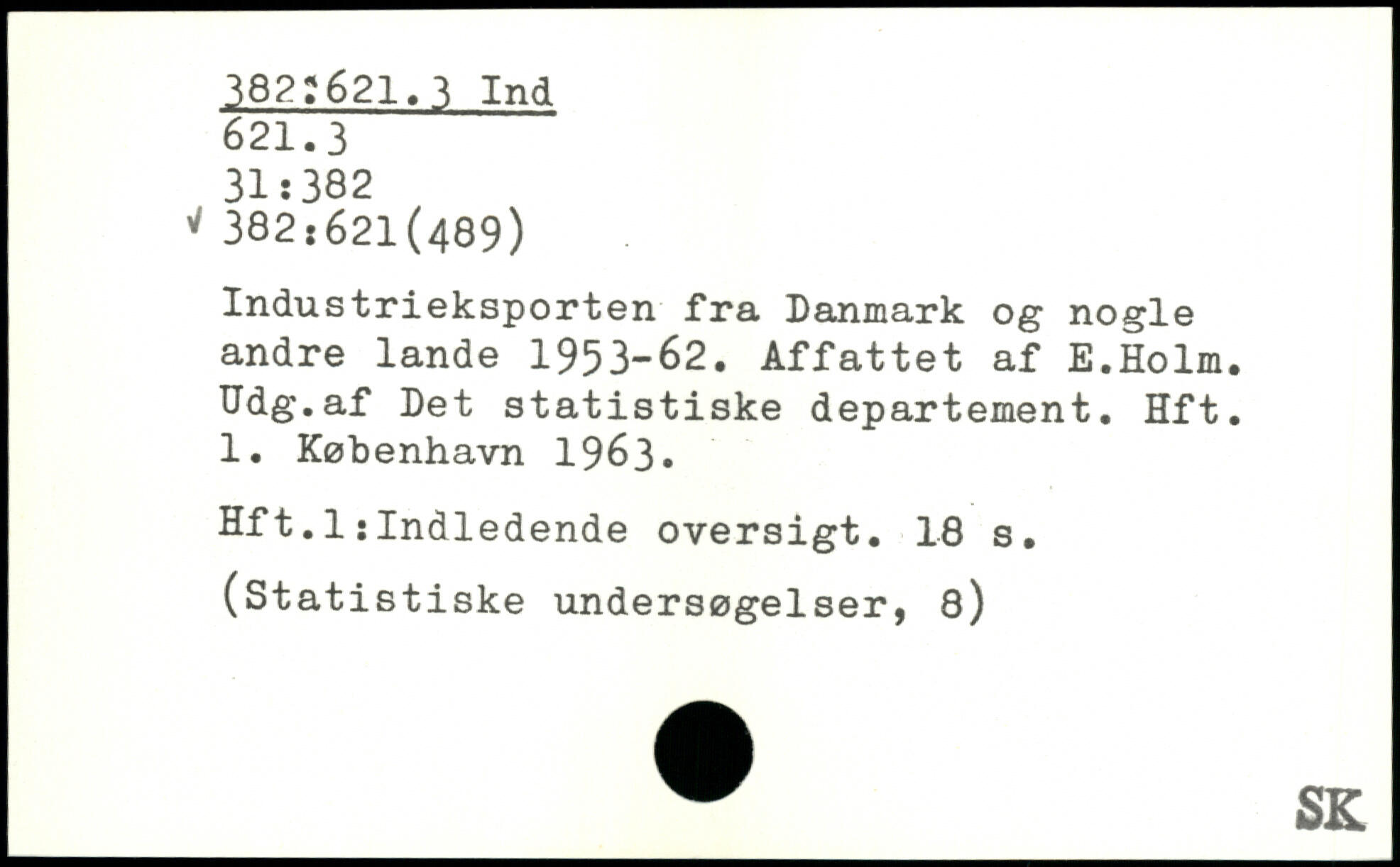 Industrieksporten fra Danmark og nogle andre lande 1953-62. Affattet af E.Holm. Udg.af Det statistiske departement. Hft. 1.