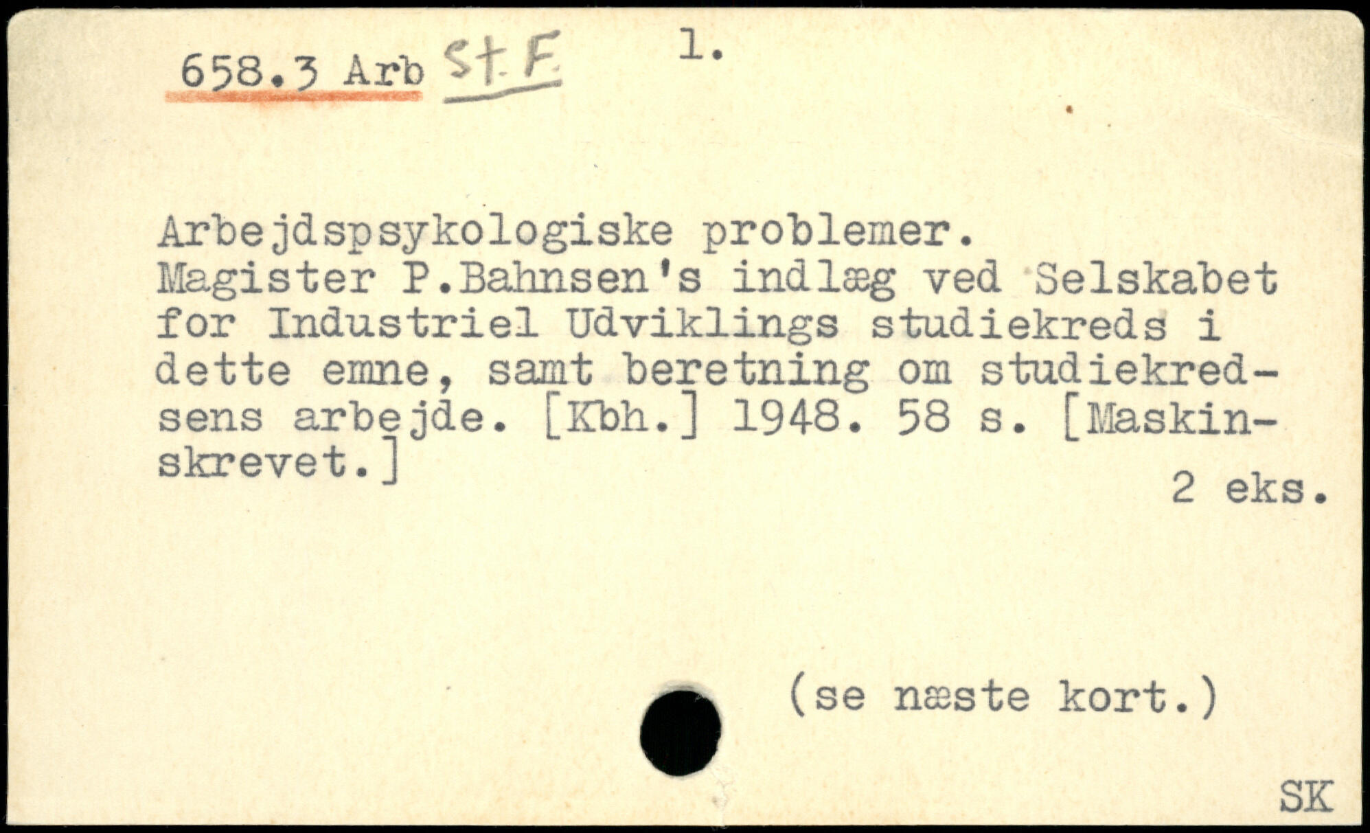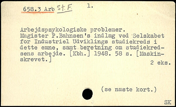 Arbejdspsykologiske problemer. Magister P.Bahnsen's indlæg ved Selskabet for Industriel Udviklings studiekreds i dette emne, samt beretning om studiekredsens arbejde