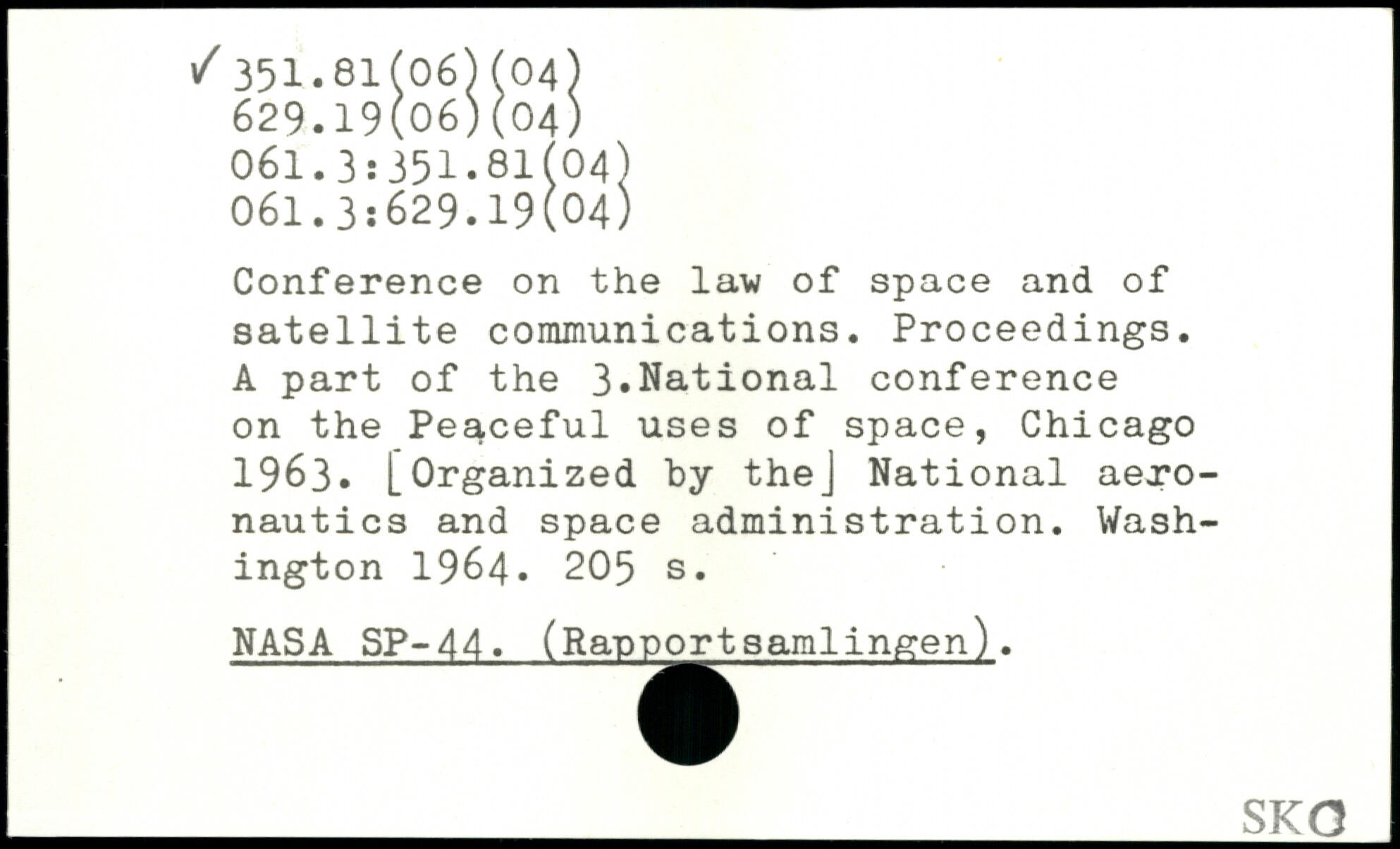 Conference on the lav of space and of satellite communications. Proceedings. A part of the 3.National conference on the Peaceful uses of space