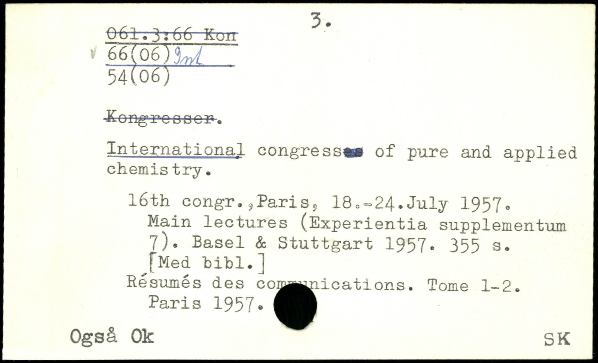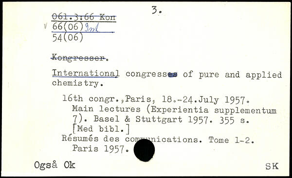 Kongr-OSCCI1. International congresst. of pure and applied chemis try. I6th congr.jPariSj 18.-24.July 1957c Main lectures (Experientia supplementum 7). Basel &