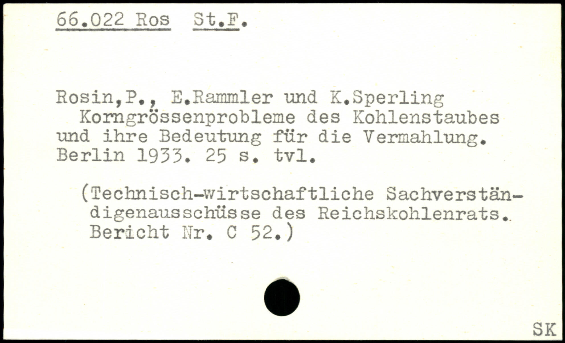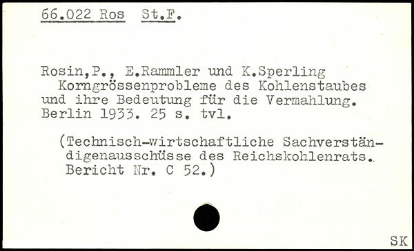 Rosin,?., E.Rammler 'und K.Sperling Korngrössenprobleme des Kohlenstaubes und ihre Bedeutung für die Vermahlung.