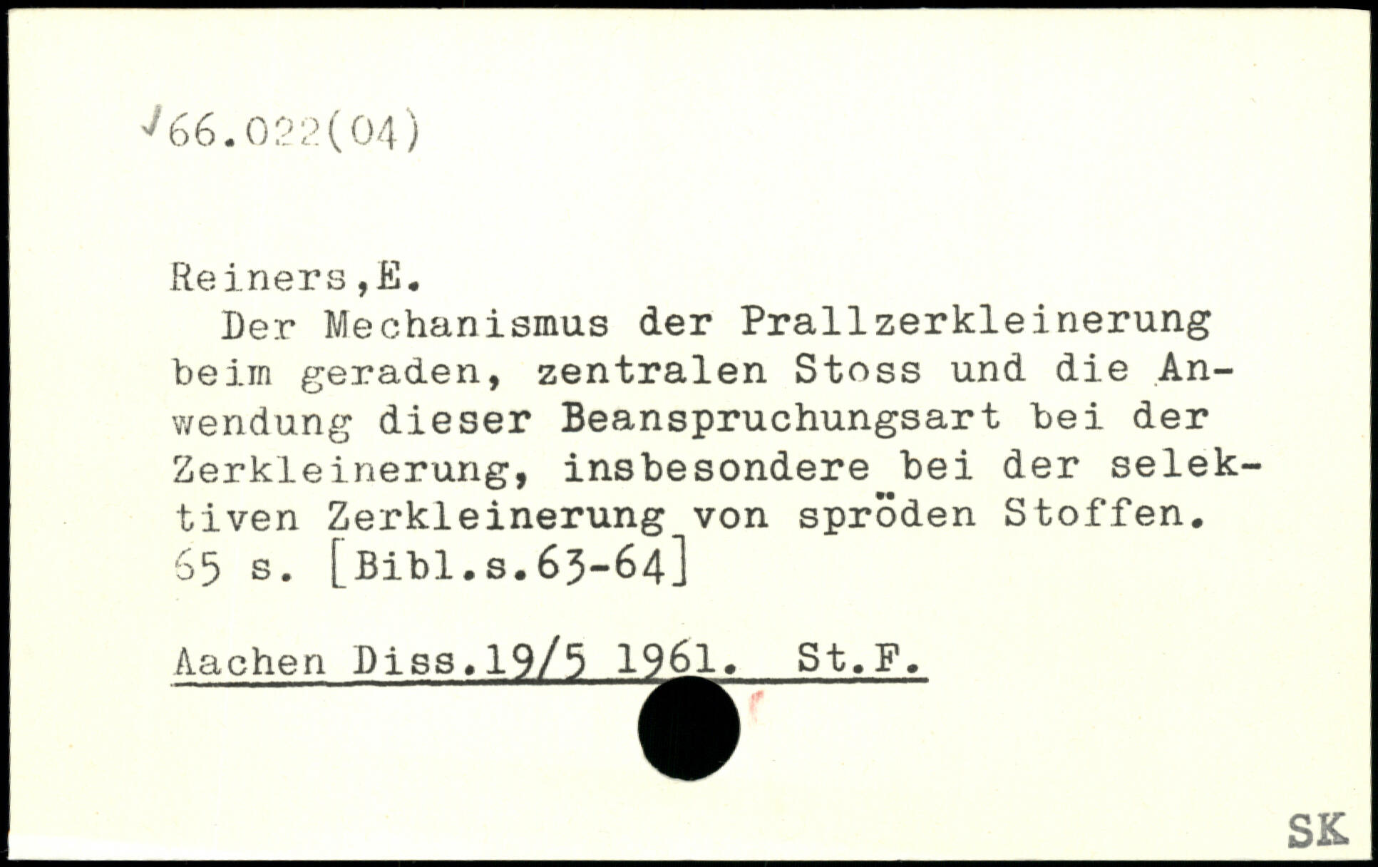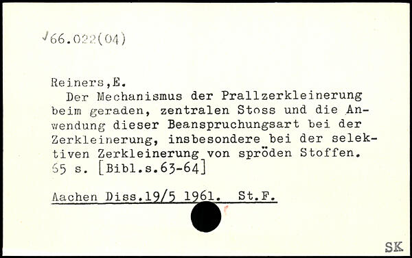 Der Mechanismus der Prallzerkleinerung beim geraden, zentralen Stoss und die An-v/endung dieser Beanspruchungsart bei der Zerkleinerung, insbesondere bei der selektiven Zerkleinerung von spröden Stoffen.