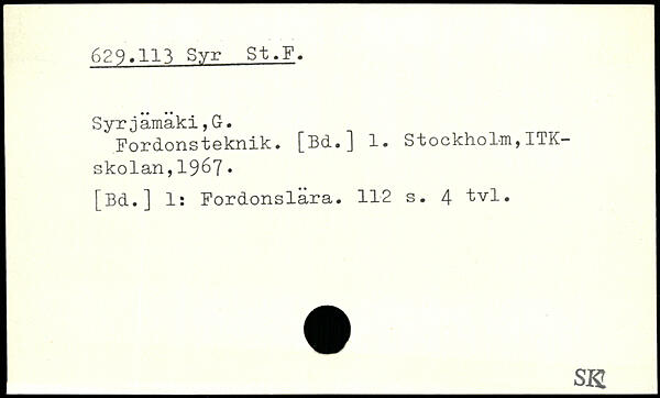 Fordonsteknik. [Bd.J 1. Stockholm,ITK— skolan,1967. [Bd.] 1: Fordonslara.