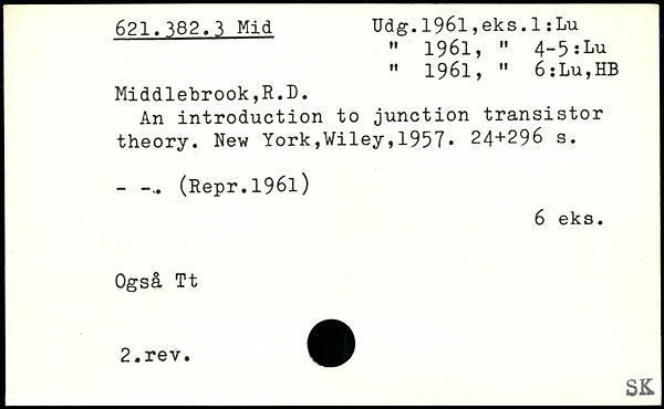 " 1961, " 6:Lu,HB Middlebrook,R.D. An introduction to junction transistor theory.