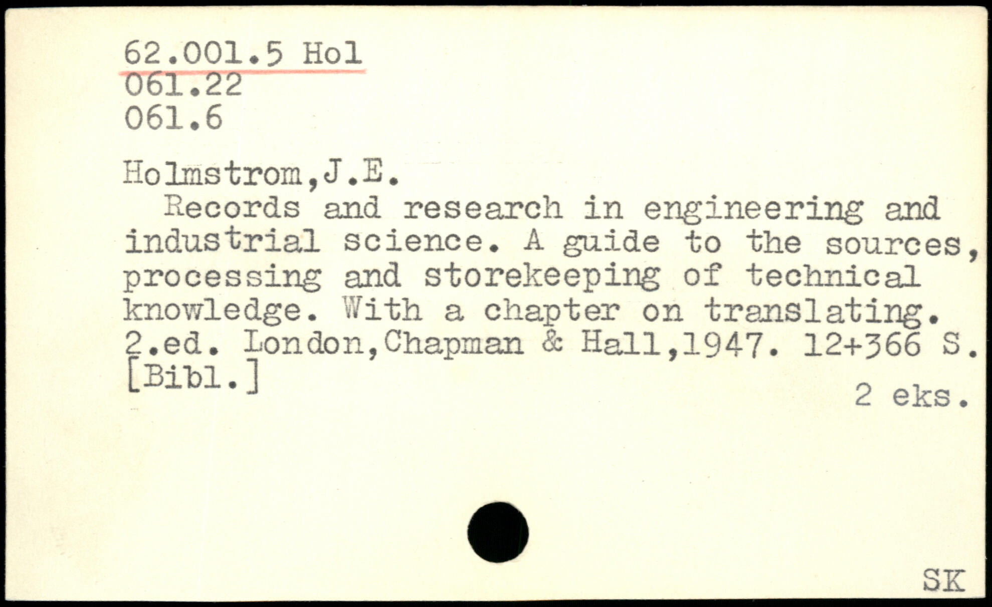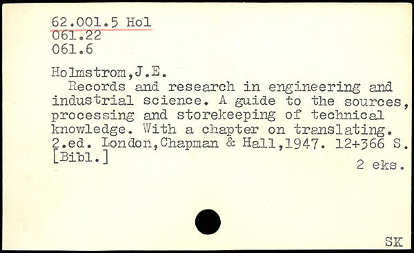 Records and research in engineering and industrial science. A guide to the sources, processing and storekeeping of technical-knowledge. With a chapter on translating.