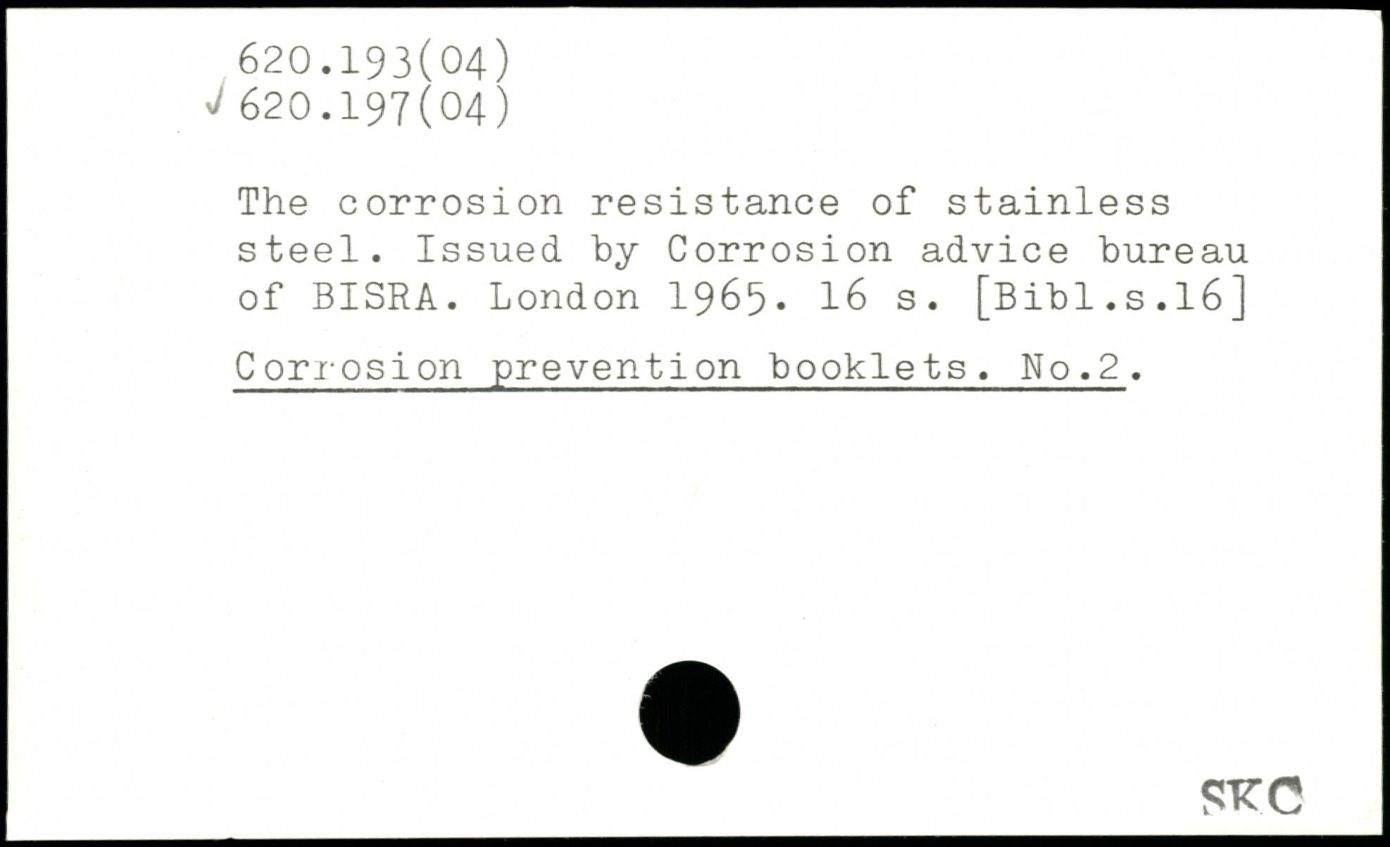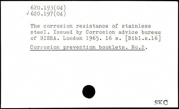 The corrosion resistance of stainless steel. Issued by Corrosion advice bureau of BISRA.
