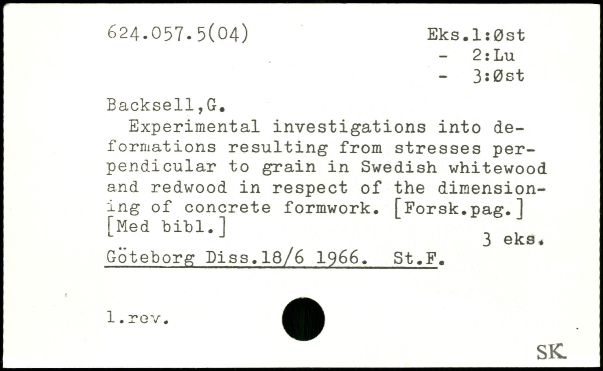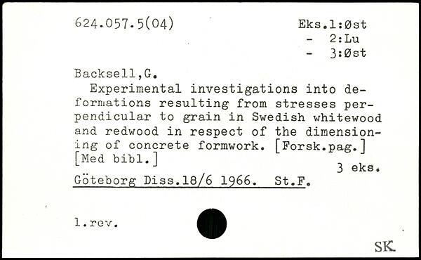 Experimental investigations into deformations resulting from stresses perpendicular to grain in Swedish whitewood and redwood in respect of the dimensioning of concrete formwork. [Forsk.pag.] [Med bibl.l , ,