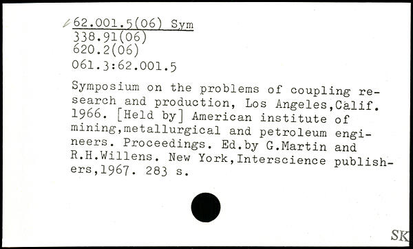 Symposium on the problems of coupling research and production, Los Angeles,Calif. 1966. [Held by] American institute of mining,metallurgical and petroleum engineers. Proceedings. Ed.by G.Martin and R.H.Willens.