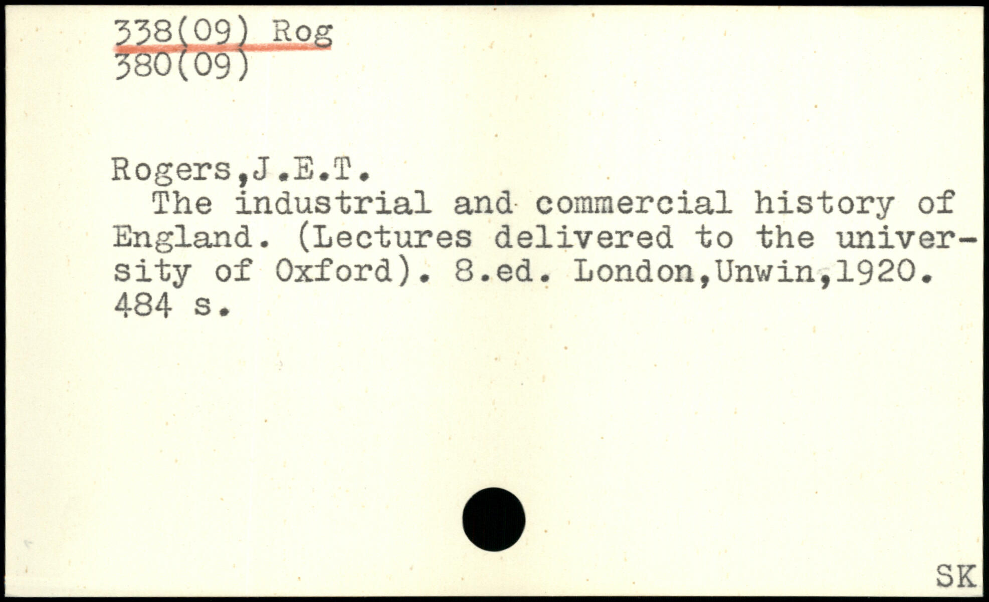The industrial and commercial history of England. (Lectures delivered to the university of Oxford).