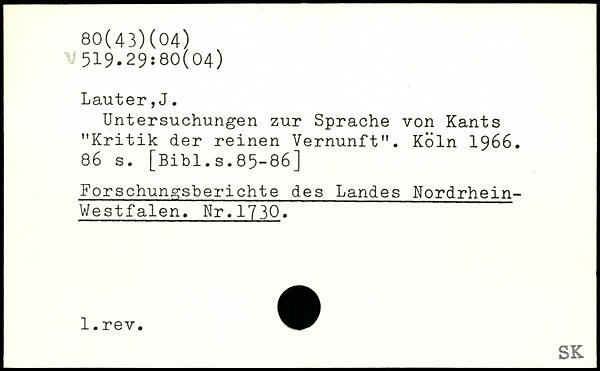 Untersuchungen zur Sprache von Kants "Kritik der reinen Vernunft".