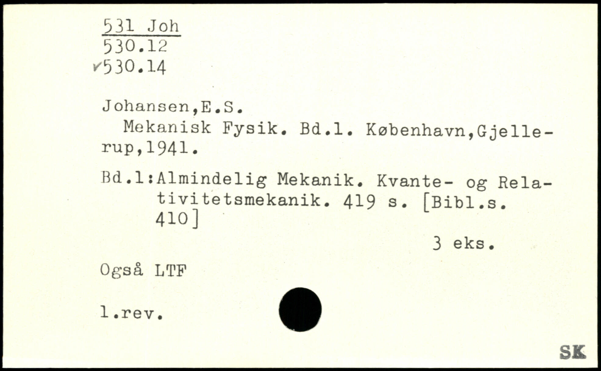 Mekanisk Fysik. Bd.l. København,Gjellerup, 1 94 1.