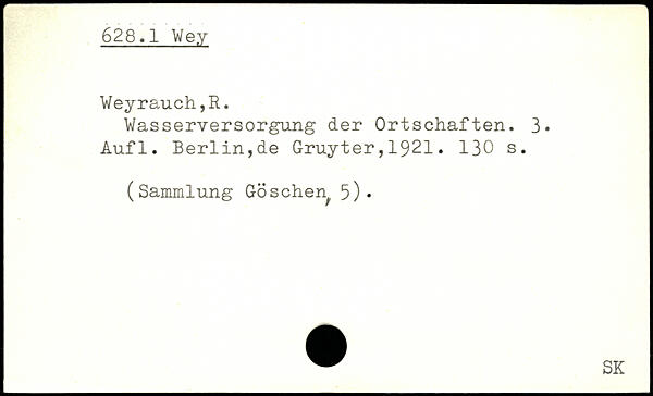 Wasserversorgung der Ortschaften. 3, Aufl. Berlin,de Gruyter,1921.