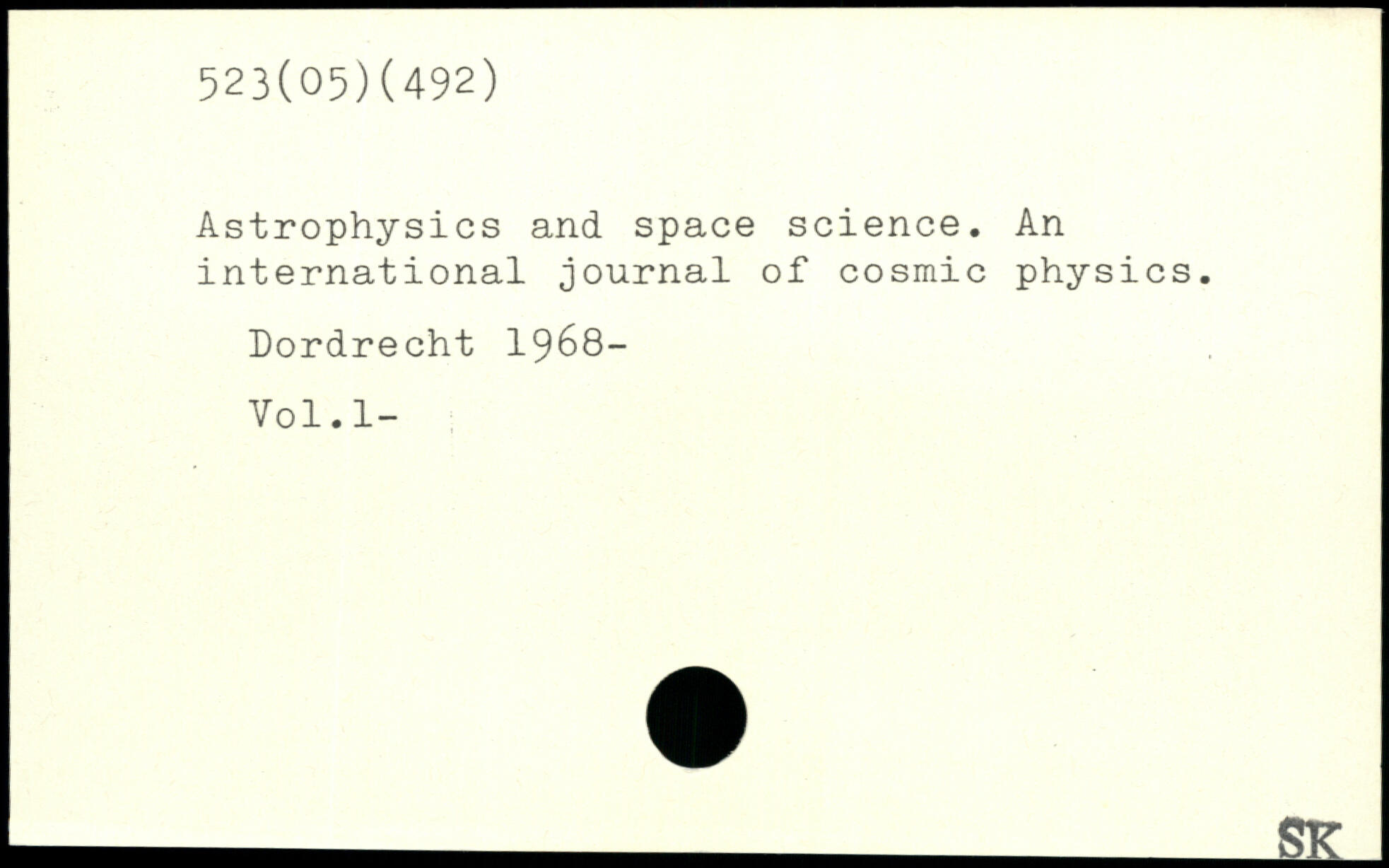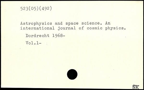 Astrophysics and space science. An international journal of cosmic physics. Dordrecht 1968- Vol.l-