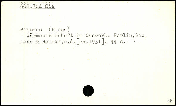 Wärmewirtschaft im Gaswerk. Berlin,Siemens & Halske,u.å.[ca.1931].