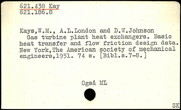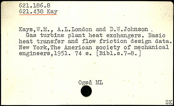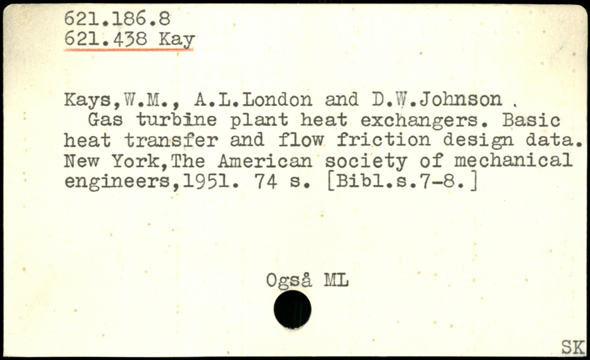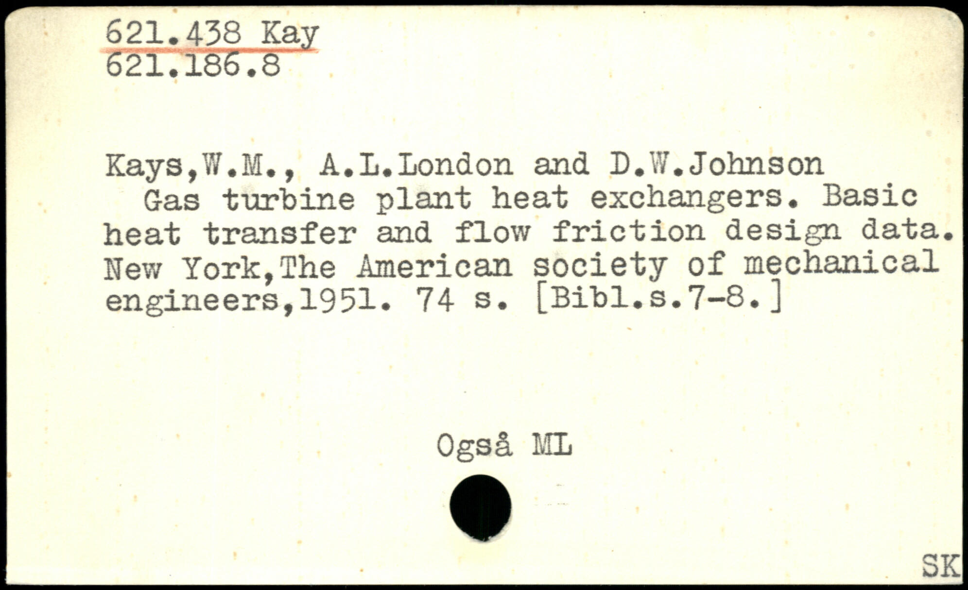 Kays,W.M., A.L.London and D.W. Johnson Gas turbine plant heat exchangers. Basic heat transfer and flow friction design data. New York,The American society of mechanical engineers,1951.