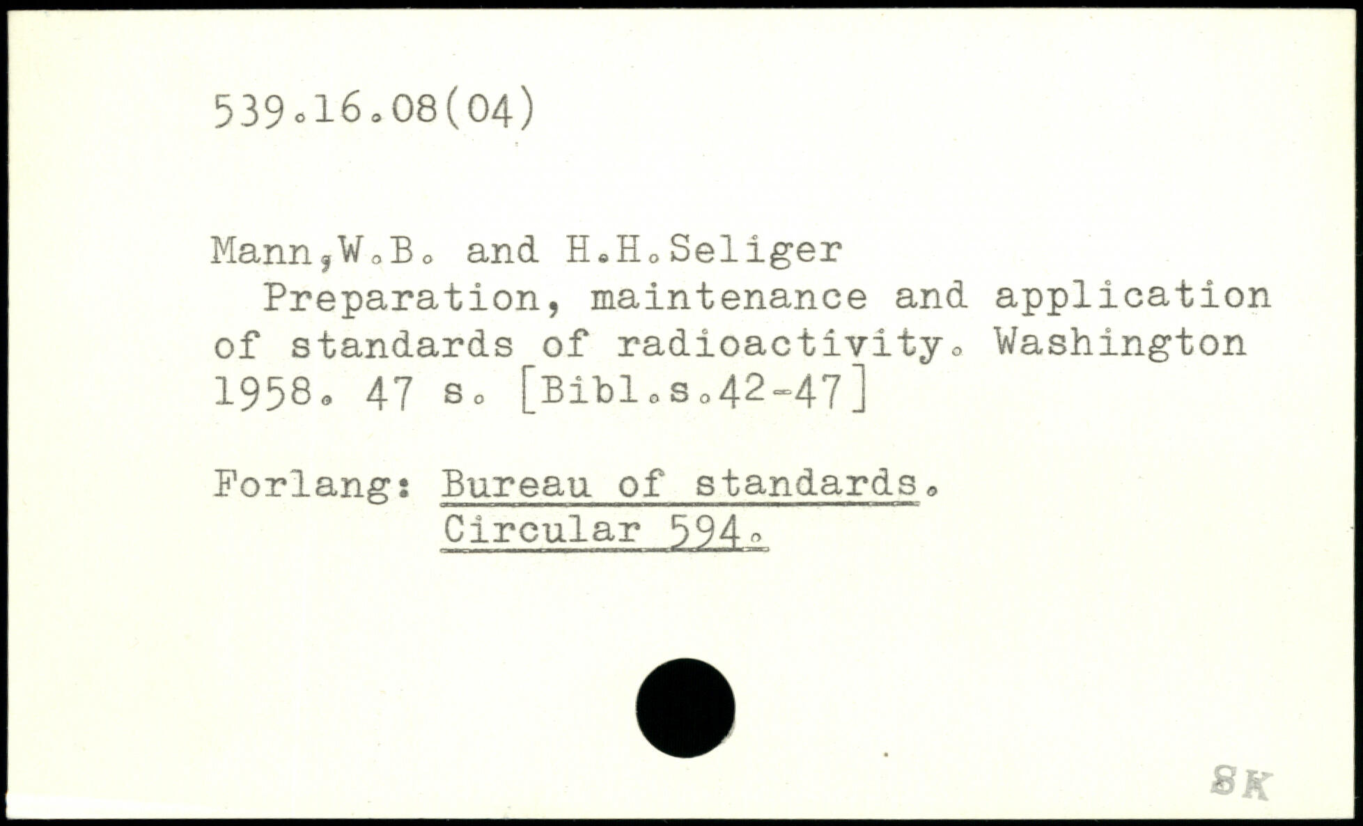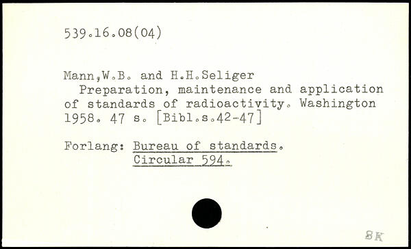 Mann,VaBo and H.HoSeliger Preparation, maintenance and application of standards of radioactivityo