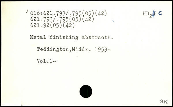 Metal finishing abstracts, Teddington,Middx, 1959“ Vol.l-