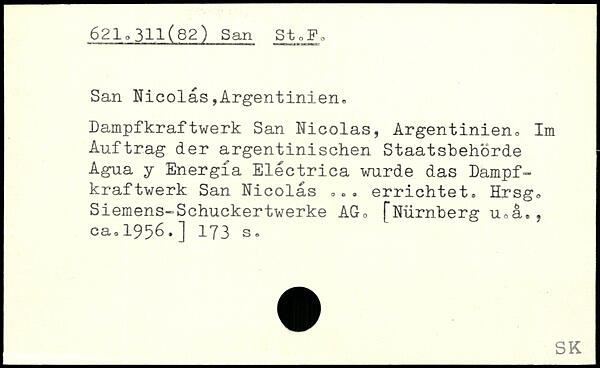 San Nicolas,Argentinien, Dampfkraftwerk San Nicolas, Argentinien, Im Auftrag der argentinischen Staatsbehörde Agua y Energia Electrica wurde das Dampfkraftwerk San Nicolas ... errichtet, Hrsg, Siemens-Schuckertwerke AG, [Nürnberg ui,, ; ca,1956.]