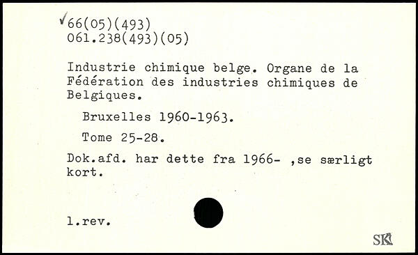 Industrie chimique belge. Organe de la Fédération des industries chimiques de Belgiques.