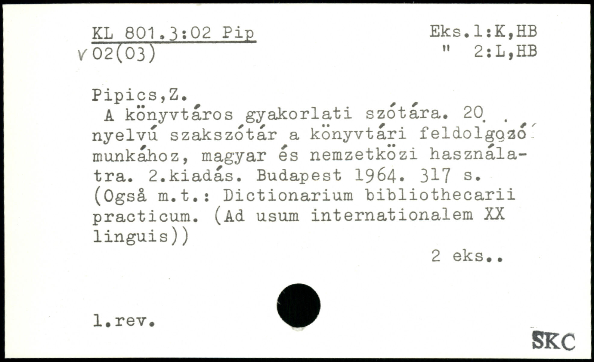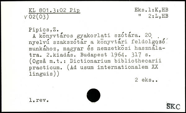 A konyvtåros gyakorlati szotara. 20> < nyelvu szakszotår a konyvtari feldolgoao munkâhoz, magyar es nemzetkozi hasznala-tra. 2.kiadås.