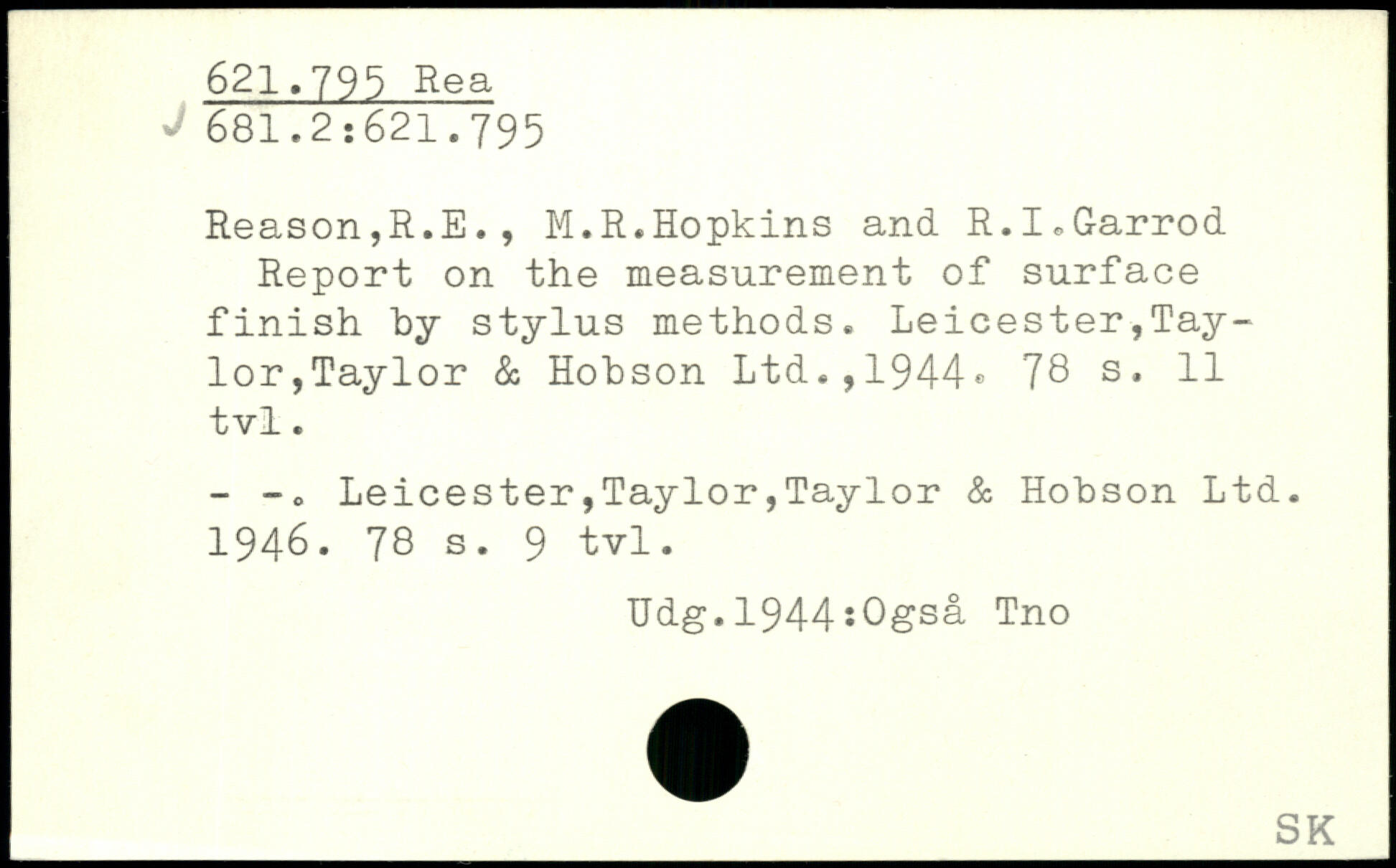 Reason,R.E., M.R.Hopkins and R.I,Garrod Report on the measurement of surface finish by stylus methods.