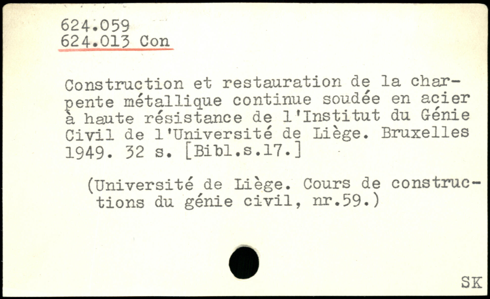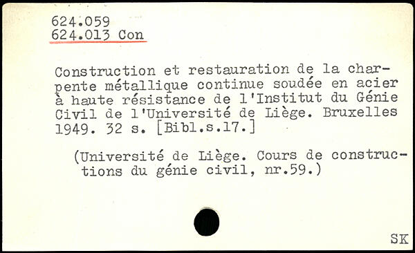 Construction et restauration de la charpente métallique continue soudée en acier a haute résistance de l’Institut du G-enie Civil de l’Université de Liège.