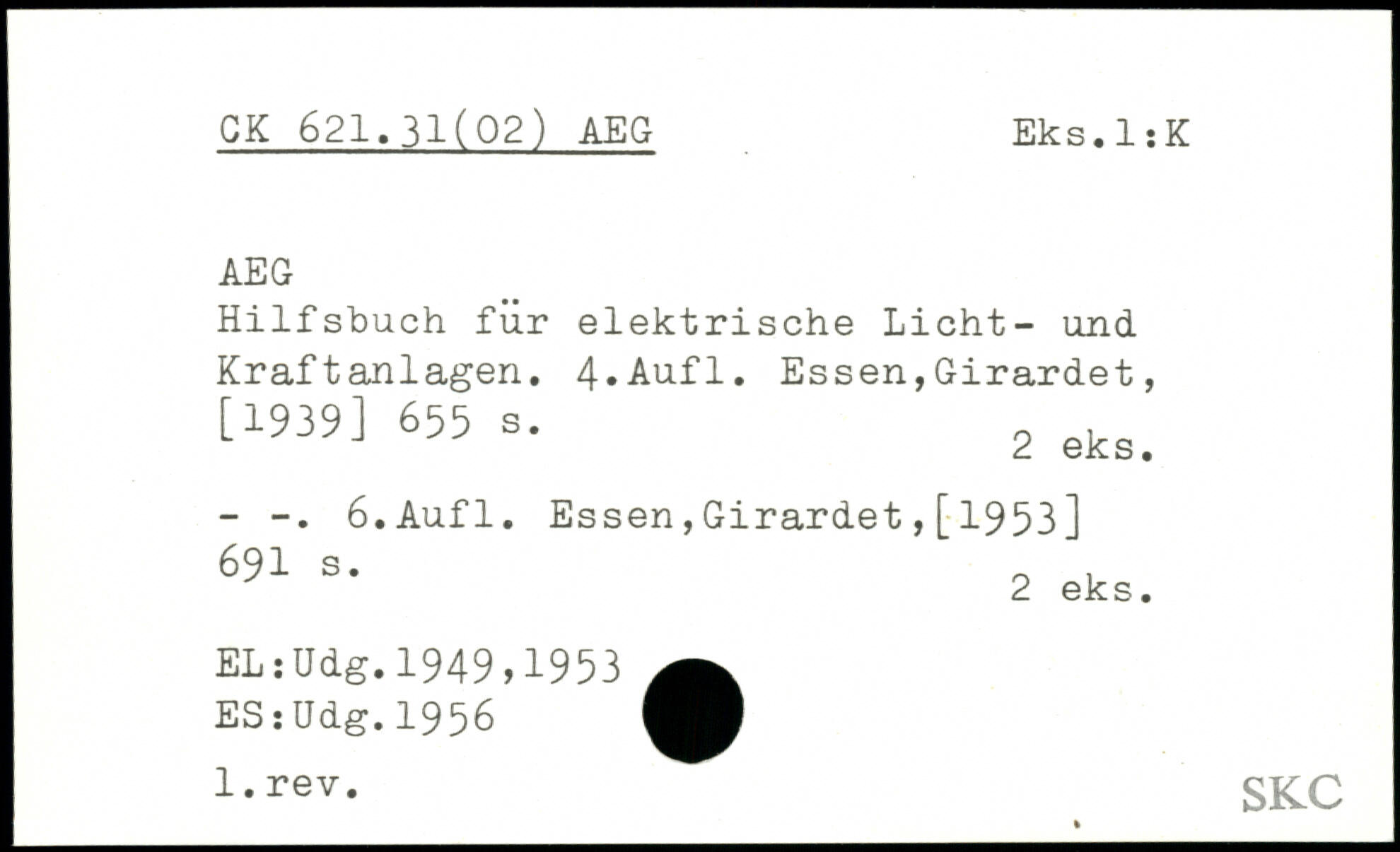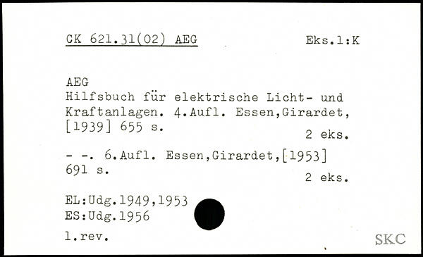 AEG Hilfsbuch für elektrische Licht- und Kraftanlagen.