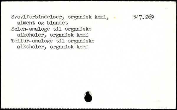 Svovlforbindelser, organisk kemi, 547-269 alment og blandet Selen-analoge til organiske alkoholer, organisk kemi Tellur-analoge til organiske alkoholer, organisk kemi